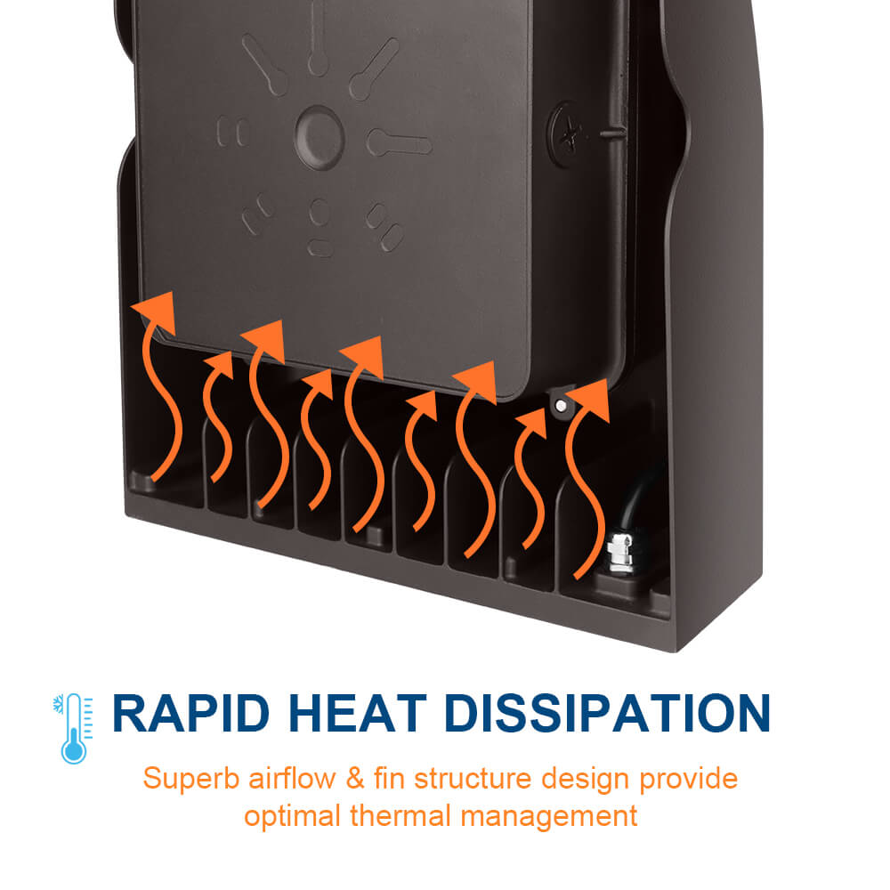 Additional highlights: full-cutoff optical design for reduced uplight and glare, UV-stable flat lens, and field-friendly mounting/aiming for fast installs and consistent results.