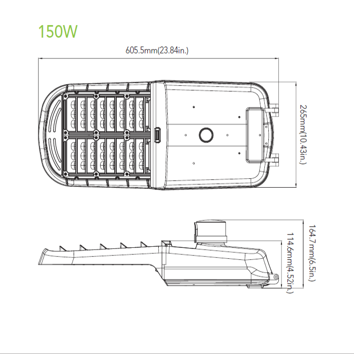 The 150 Watt Konlite LED Roadway Light carries a 20,000 lumen output, designed to replace a 400 Watt equivalent Dusk to Dawn Cobra Head Light. Our roadway lights are crafted with heavy-duty cast aluminum and maintain the ability to withstand 3G vibrations. They’re ensured for longevity in any application with an estimated LED lifespan of 50,000 hours.